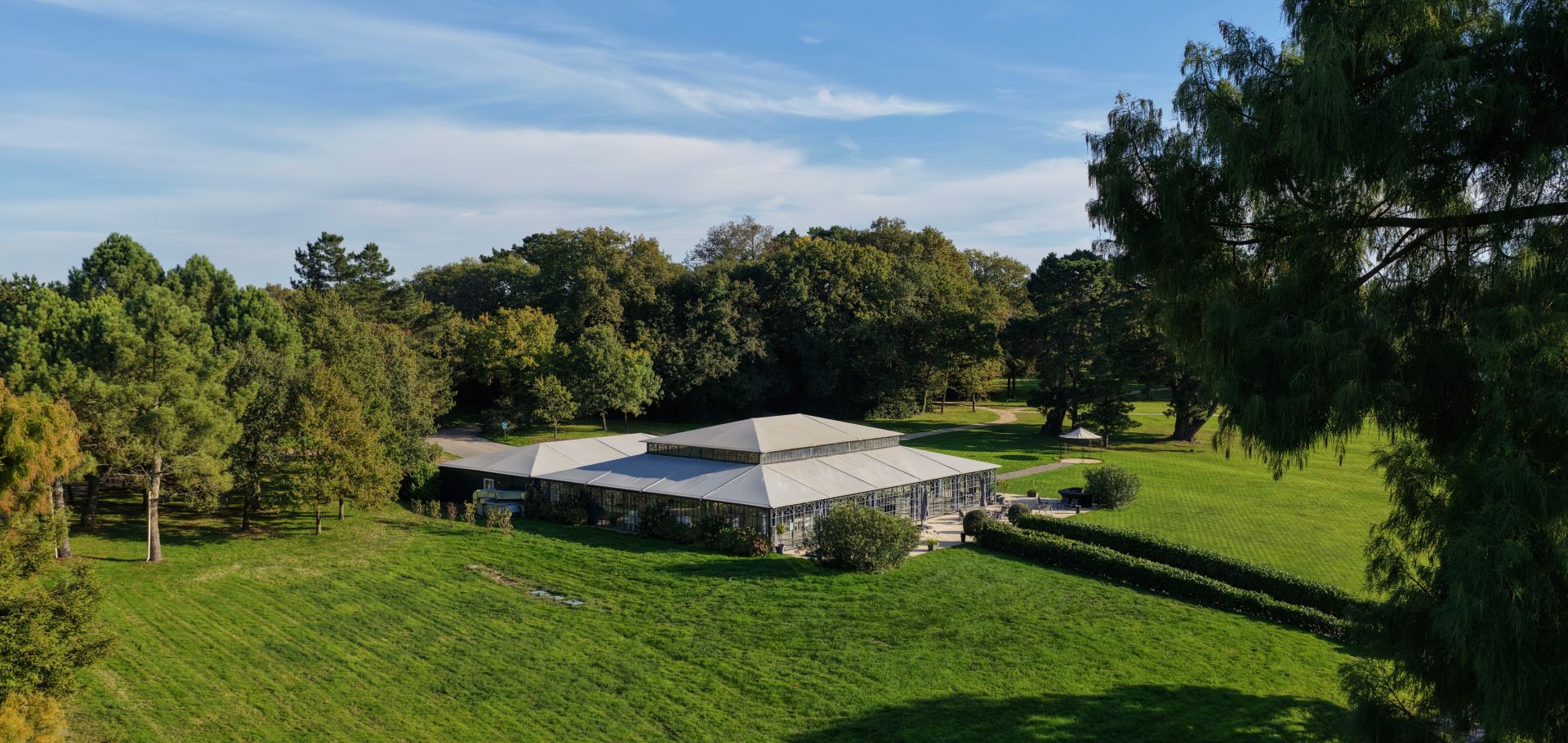 Avec sa capacité de 250 convives en configuration assise, l’Orangerie se fait le cœur battant de vos événements les plus précieux. Sa majestueuse verrière, ses vues sur l’étang et sa lumière naturelle créent une atmosphère empreinte de grâce et de poésie. Chaque repas, chaque toast, chaque sourire s’y transforme en un souvenir précieux, à la mesure de la beauté des lieux.